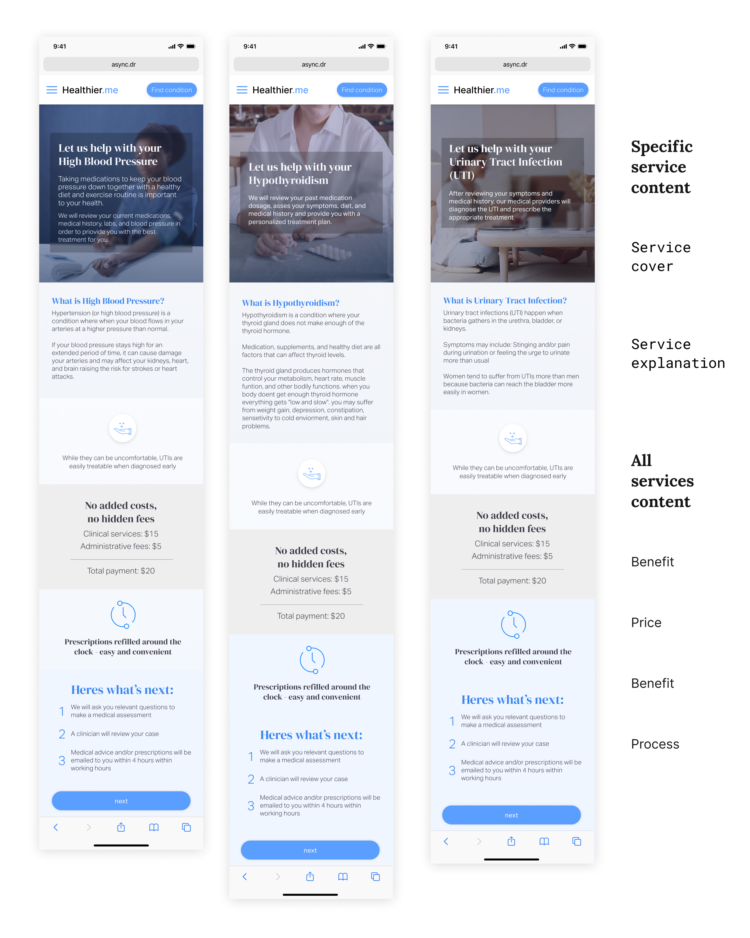 Based on the tests and decision to implement the new service page, the next phase was to better explain the "medical questionnaire”.