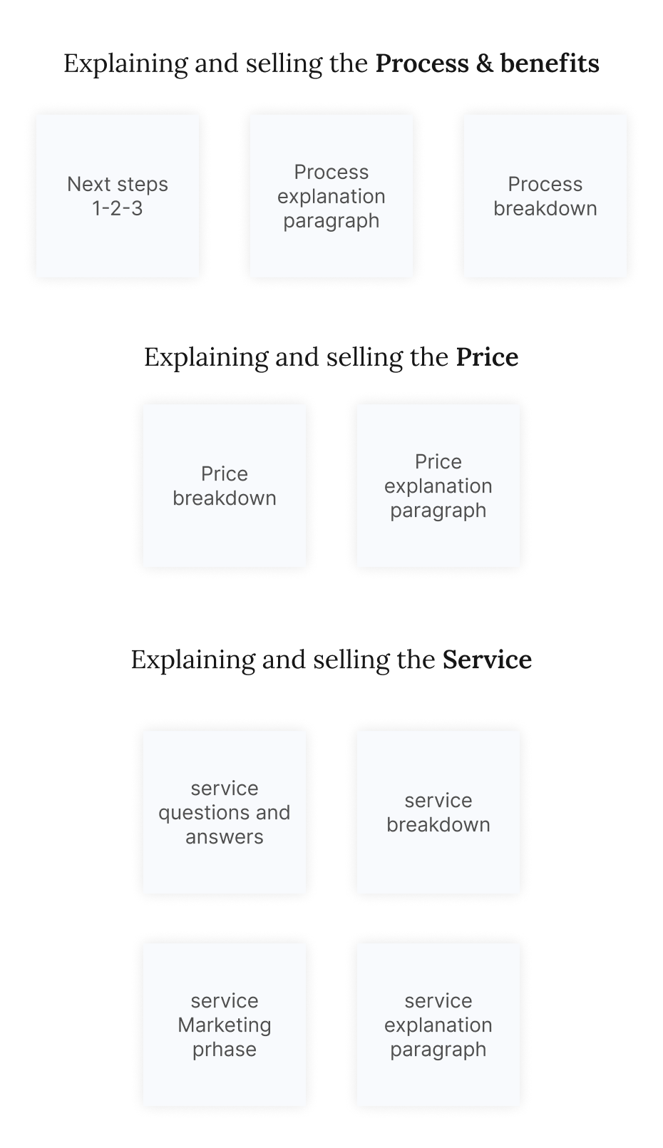 The first service page only included the name, price, and process steps. This was an MVP version that was low in content and meant to be improved with content.