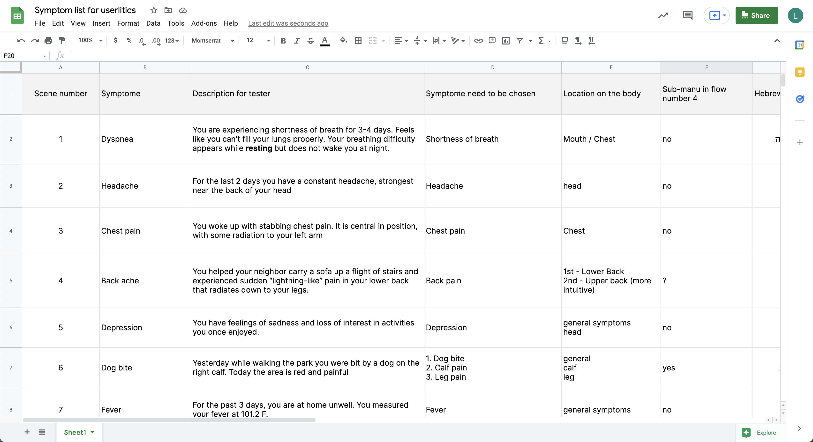 After ideating the four options; I wanted to test them on a usability testing platform. With the help of the medical staff, we wrote ten cases of different symptom selections that would test the assumptions from the previous step.