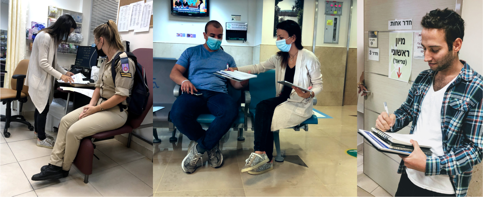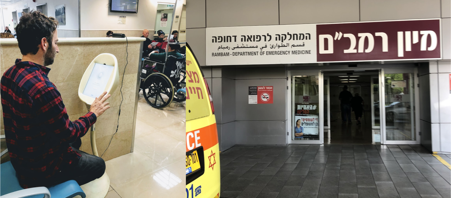 I did user research in the emergency department of Rambam Hospital’s clinical trial, studying the doctors and patients using the system and comparing them to the face-to-face triage (the process of sorting people based on their need for medical treatment). These visits helped me understand the gap between what patients think they have and what doctors think needs to be treated first. For example, patients usually talk about their most significant pain, even if it's something they have had for years and not what made them come to the ER, which is much more relevant to the MD.