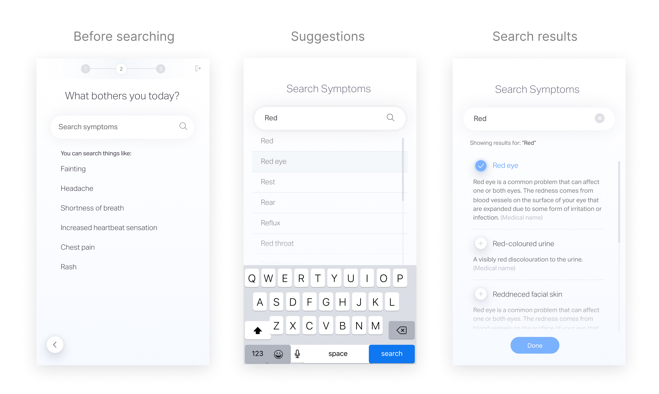This realization shifted the focus of the research toward helping users choose symptoms correctly.
